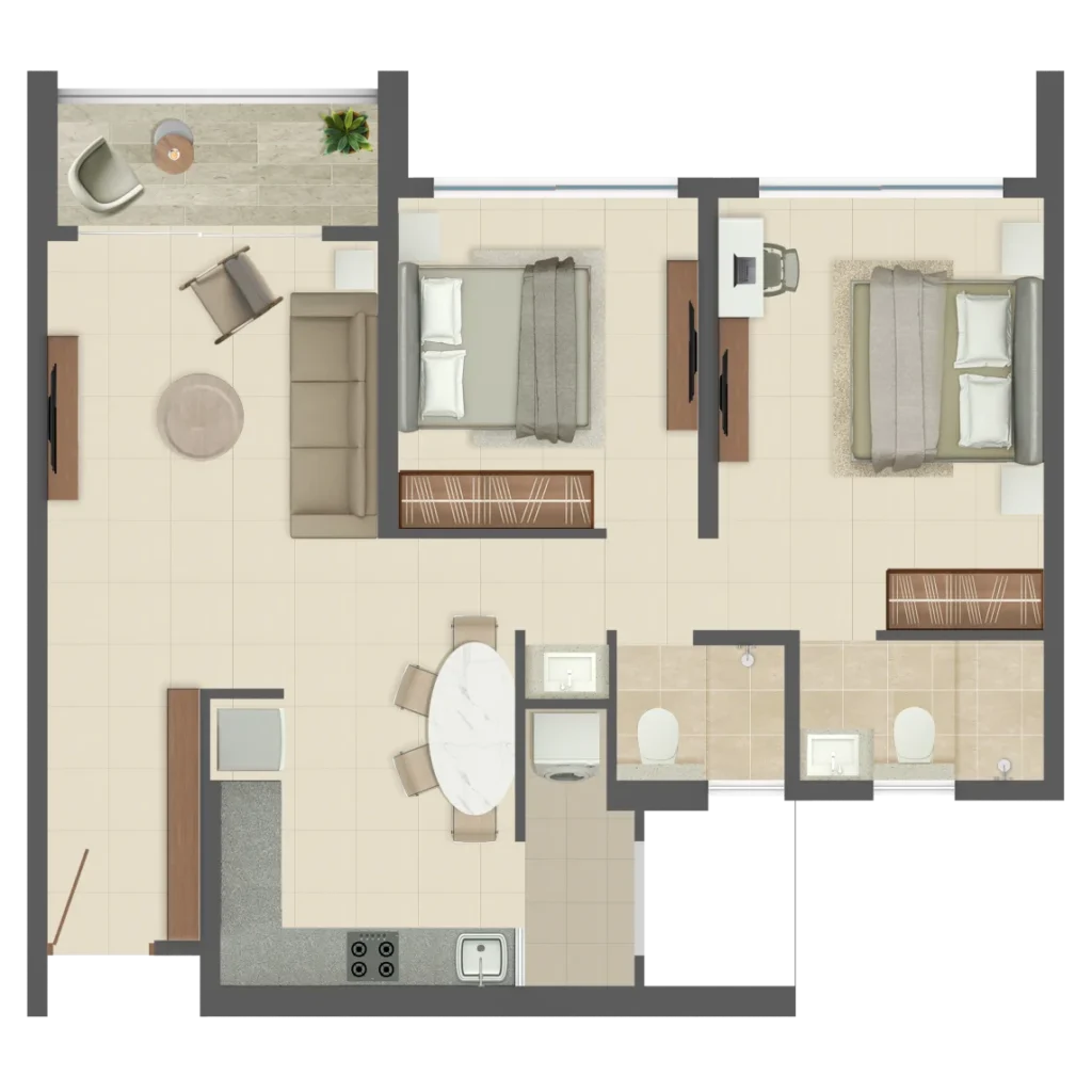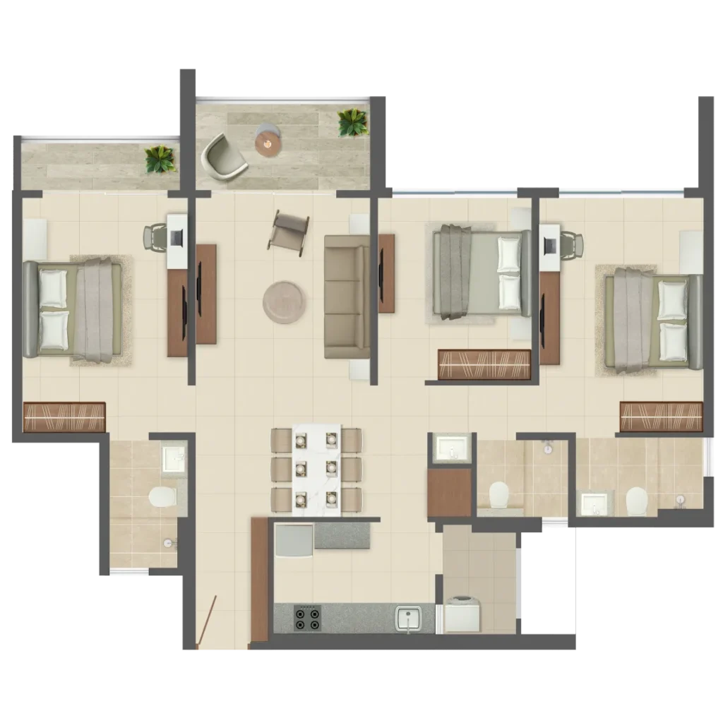 - Vitrified tiles for living, kitchen, dining, bedroom